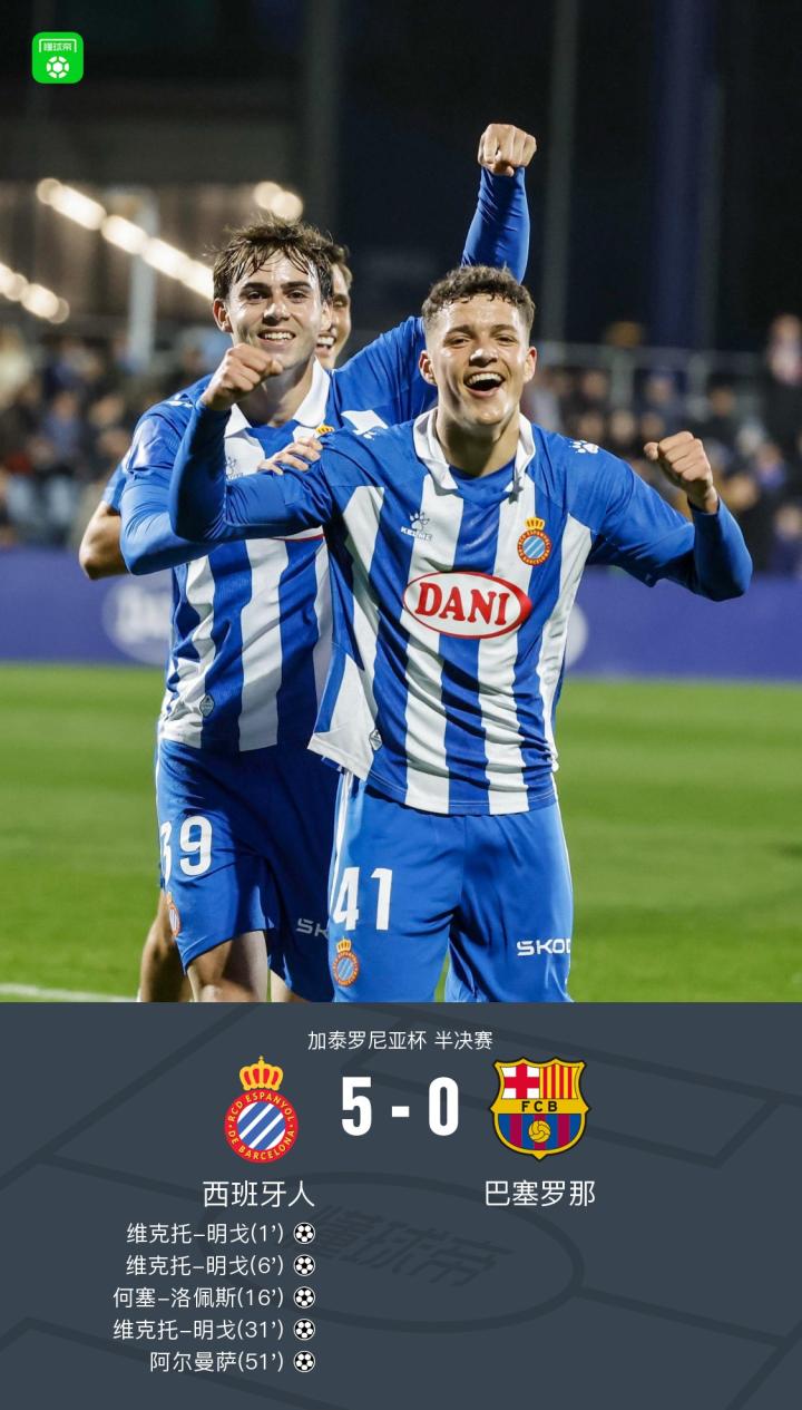 西班牙人5-0巴塞罗那:巴萨遭惨败加泰罗尼亚杯半决赛